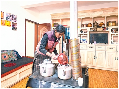 “你们尝尝。”次仁普尺端来一壶热气腾腾的酥油茶,眉眼间满是笑意。围坐在炉子旁,她与记者自然而然地聊起了震后的近况。